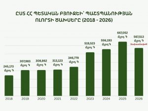 Պաշտպանության նախարարությունը տարածել է պաշտպանության ոլորտի 2018-2026 թթ. ծախսերը՝ ըստ պետական բյուջեի։