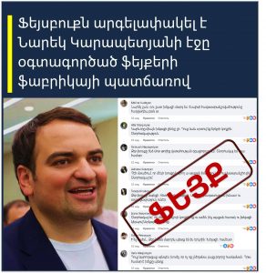 Մեծ կեղծիքն սկսվում է փոքր կեղծիքից։ Ձու գողացողը ձի է գողանում»,- գրել է Սաֆարյանն ու հրապարակել տեսապատճեն, որում նշվում է՝ Կարապետյանի էջն արգելափակվել է «ֆեյքերի ֆաբրիկա» կիրառելու պատճառով:
